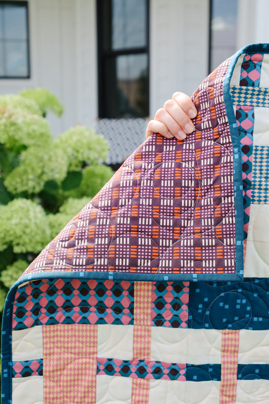 Geometry Parallel Plum backing by Ruby Star for Plaidy Cake quilt, 4 yards