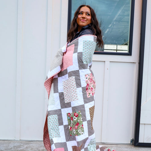 Iconic Quilt Sample Featuring Moda Lovestruck Fabric, 78" x 78"