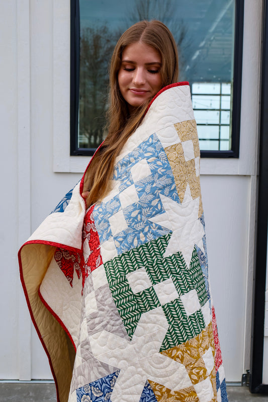 Foxtrot Quilt Sample Featuring Moda Flower Press Fabric, 68.5" x 68.5"