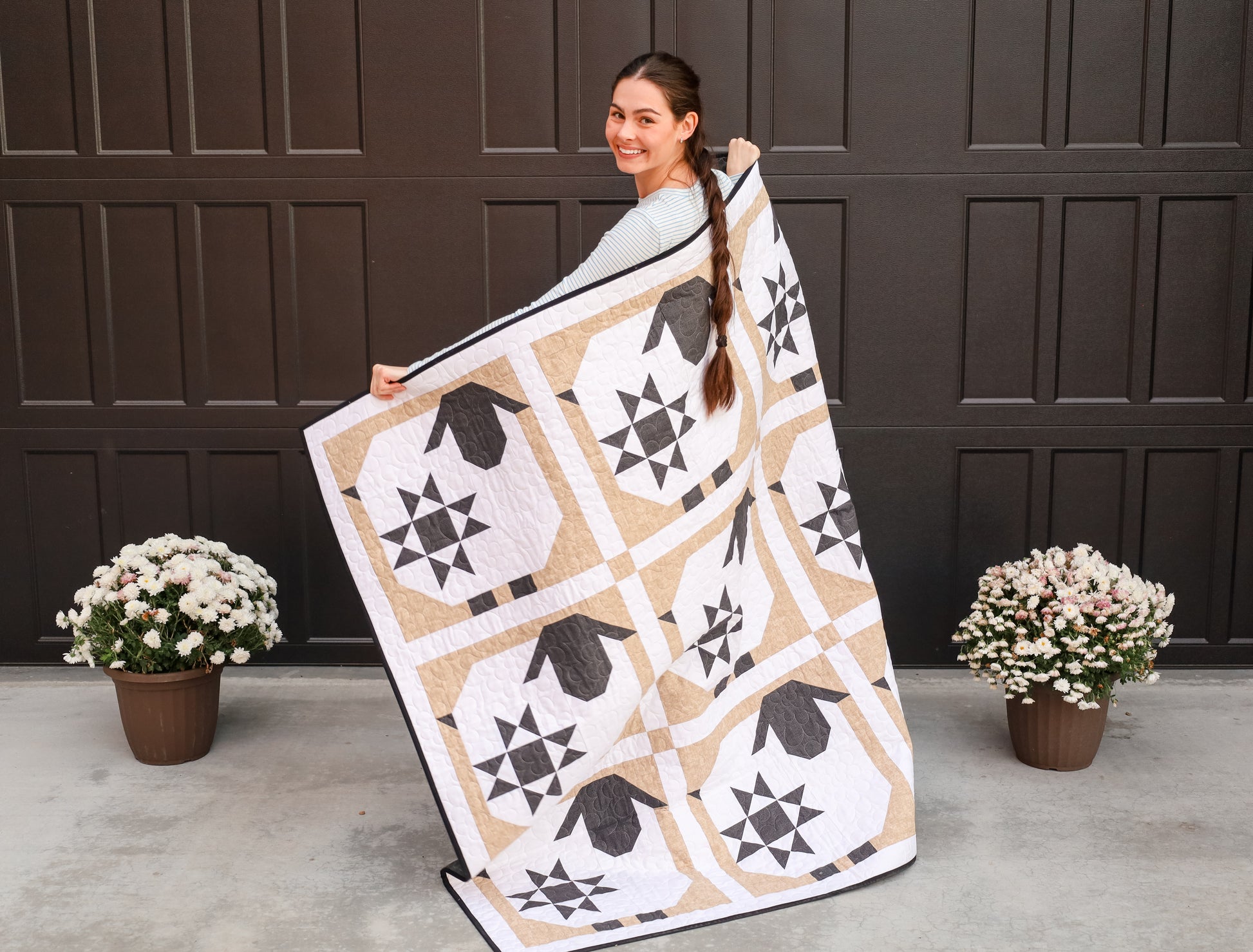 You are going to LOVE this one. The adorable Wooly Star sheep featuring thatched line by Moda fabrics and our famous white dreamy cotton. This kit is all pre-cut into all the initial pieces. You will need to further cut some half square triangles.